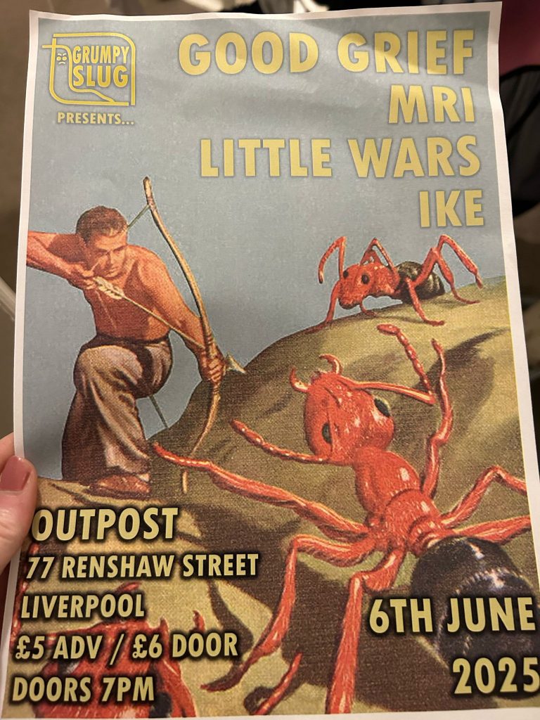 We’re lined up to play for Grumpy Slug Promotions alongside the rather awesome Good Grief, the dead cool Little Wars and the rather ace IKE