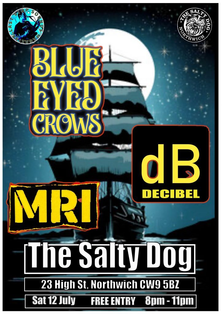 Gig News: The Salty Dog – with Blue Eyed Crows and Decibel – Saturday 12th July 2025 – FREE ENTRY